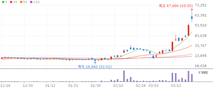 - 주봉 (Weekly): 2026년 2월 중순(W06) 42.18%의 주간 상승률을 기록하며 박스권을 돌파한 이후, 3월 초(W10)에도 36.81%의 추가 급등세를 보이며 전형적인 '계단식 상승' 패턴을 보여주고 있다.